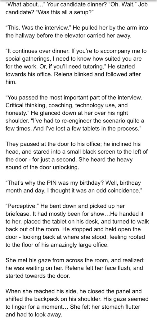 As I’m wiped out and it’s my turn to sleep, I’m going to call it for tonight. I’ll screenshot another bit from my story, though. 🙂